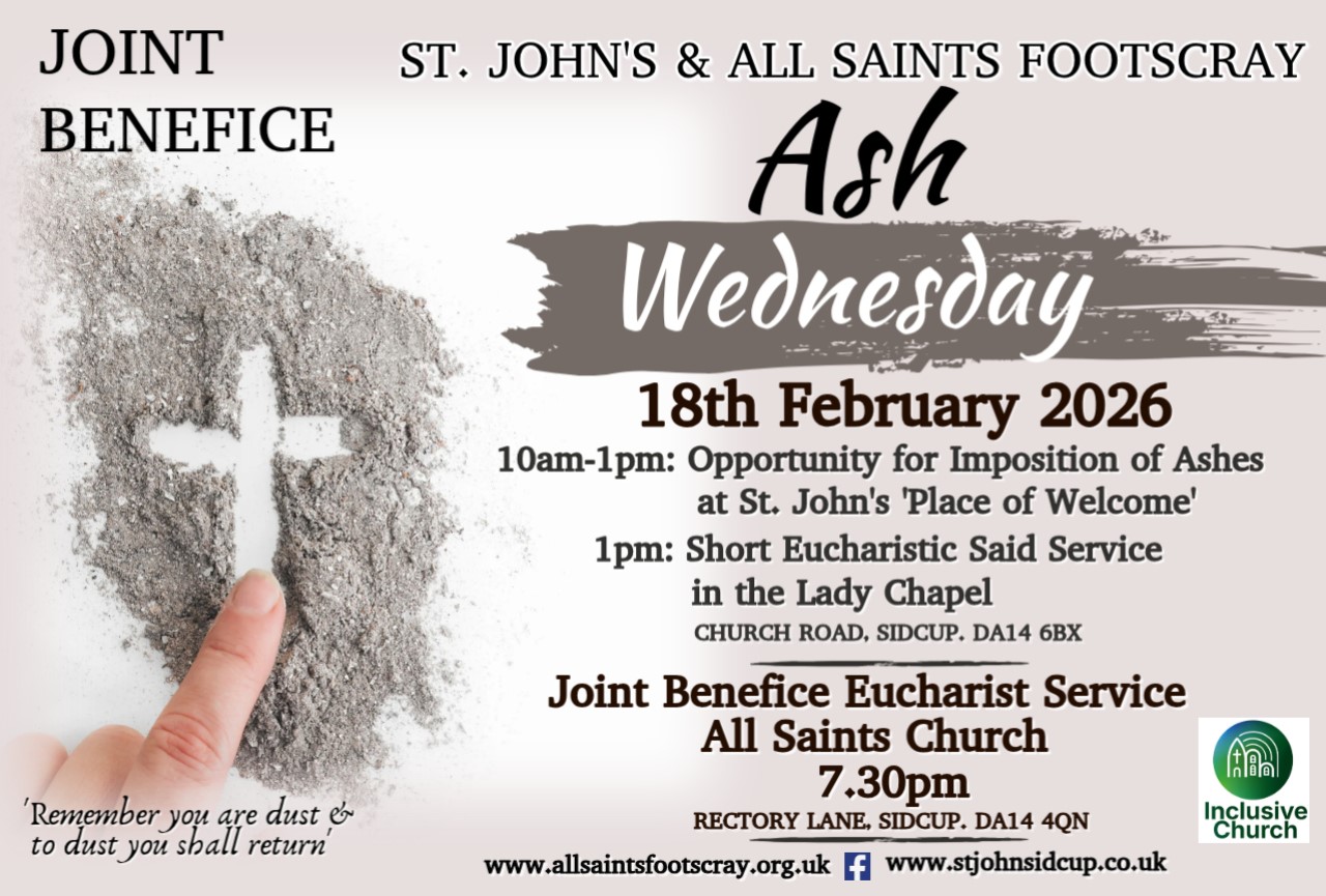 Ash Wednesday Service at All Saints Foots Cray 7:30pm